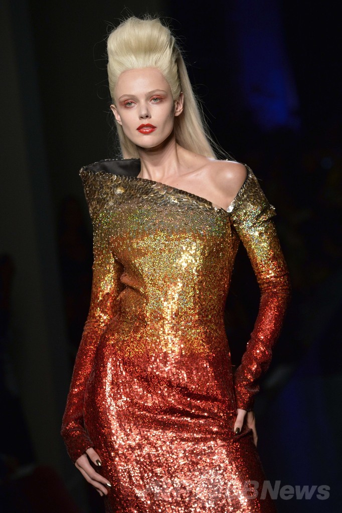 【7月10日 AFP】フランス・パリ市内で6日から11日まで14/15年秋冬パリ・オートクチュールコレクションが開かれている。