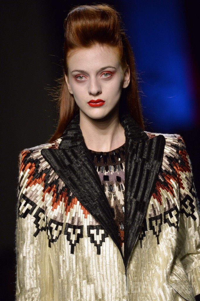 9日には、 「ジャンポール・ゴルチエ(Jean-Paul Gaultier)」が新作を発表。ランウェイには欧州国別対抗歌謡祭「ユーロビジョン・ソング・コンテスト(Eurovision Song Contest)」優勝者でひげを生やしたドラァグクイーン(女装パフォーマー)として一躍話題となったコンチータ・ウルスト(Conchita Wurst)さんも登場した。(c)AFP