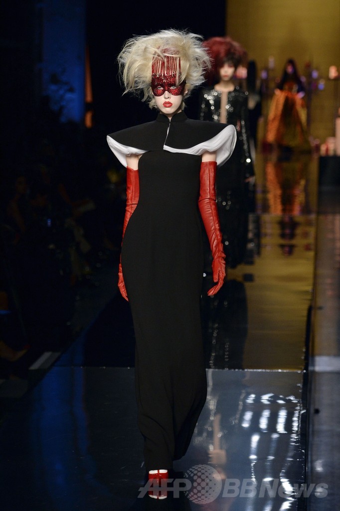 9日には、 「ジャンポール・ゴルチエ(Jean-Paul Gaultier)」が新作を発表。ランウェイには欧州国別対抗歌謡祭「ユーロビジョン・ソング・コンテスト(Eurovision Song Contest)」優勝者でひげを生やしたドラァグクイーン(女装パフォーマー)として一躍話題となったコンチータ・ウルスト(Conchita Wurst)さんも登場した。(c)AFP