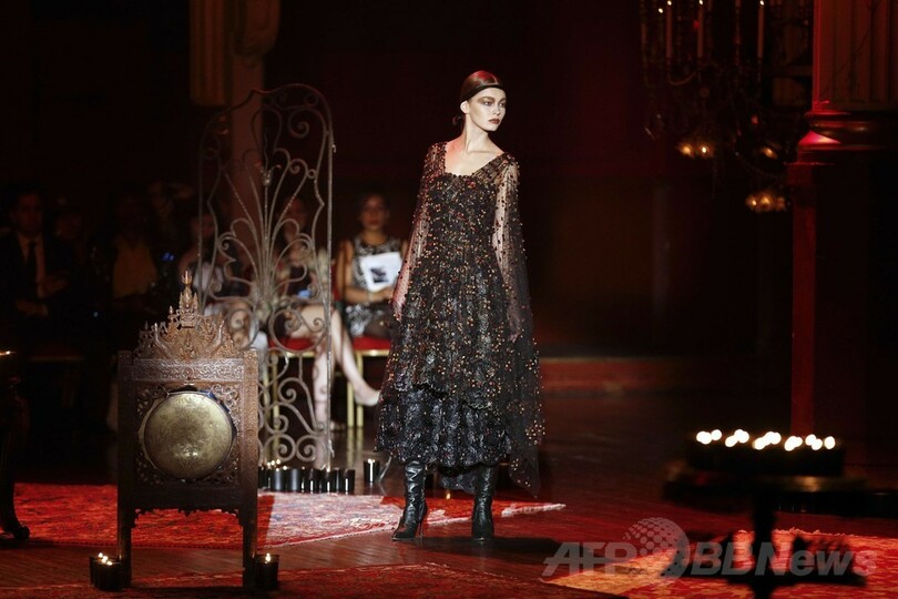 9日には、「フランク・ソルビエ(Franck Sorbier)」が新作を発表した。(c)AFP