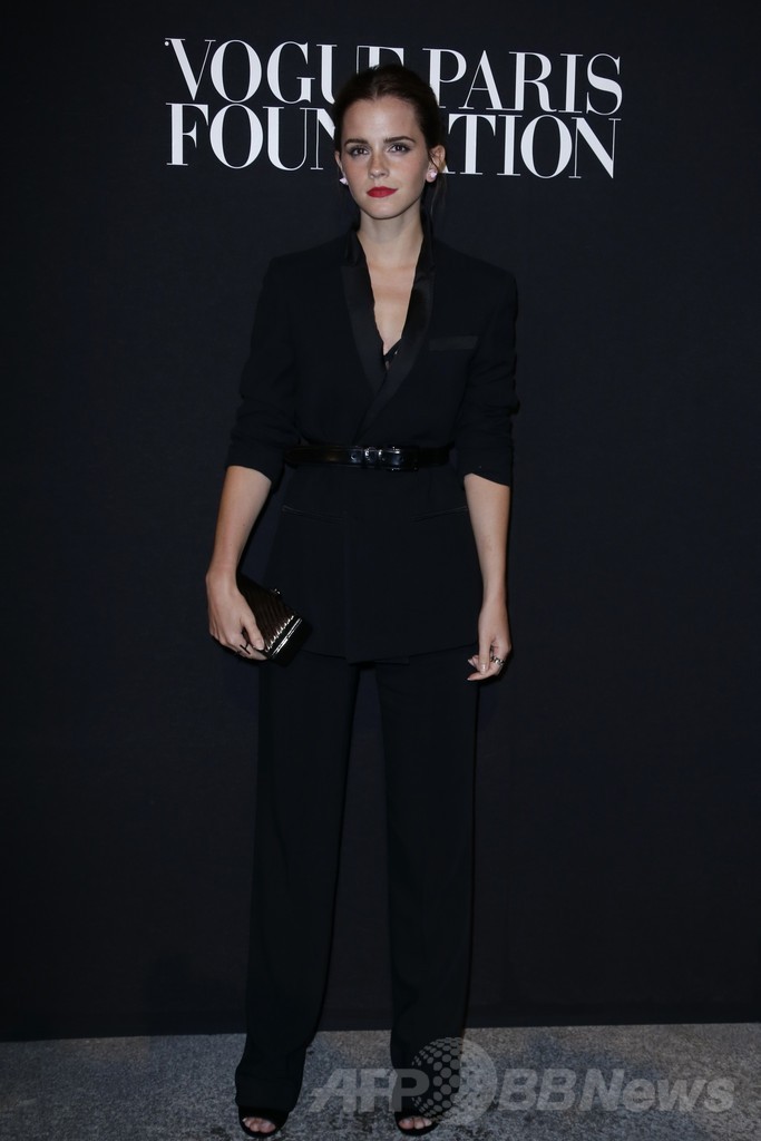 この日、女優のエマ・ワトソン(Emma Watson)は、「ジバンシィ(Givenchy)」のスーツを着用してメディアの前に姿を見せた。(c)MODE PRESS