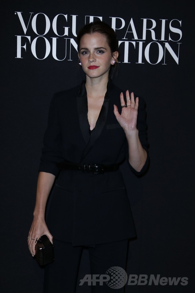 この日、女優のエマ・ワトソン(Emma Watson)は、「ジバンシィ(Givenchy)」のスーツを着用してメディアの前に姿を見せた。(c)MODE PRESS