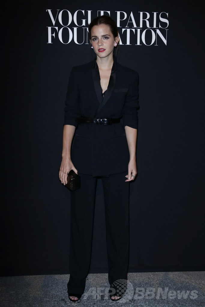 この日、女優のエマ・ワトソン(Emma Watson)は、「ジバンシィ(Givenchy)」のスーツを着用してメディアの前に姿を見せた。(c)MODE PRESS