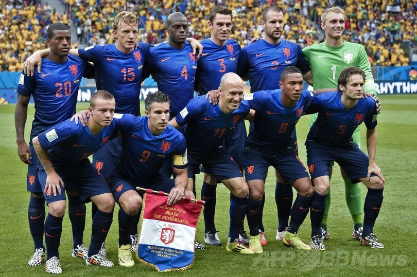 一方で、ルイス・ファン・ハール(Louis van Gaal)監督率いるオランダは、準決勝のアルゼンチン戦をPKで落としており、無敗で3位の座を手にした。(c)AFP