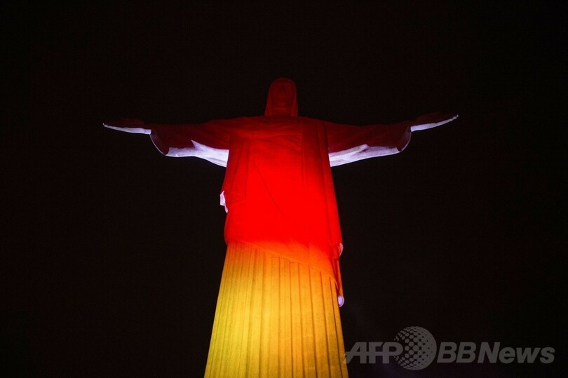 W杯決勝前夜、リオのキリスト像もライトアップ
