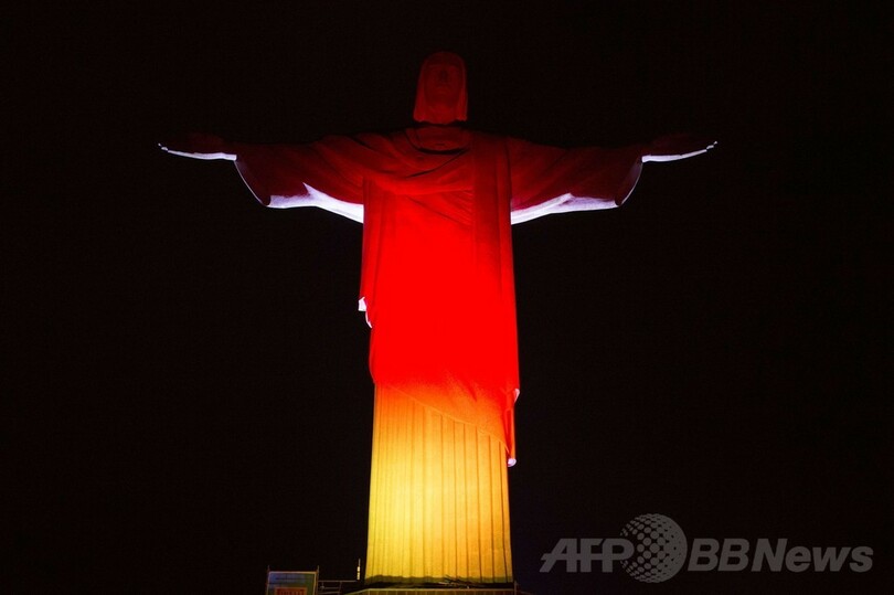 W杯決勝前夜、リオのキリスト像もライトアップ
