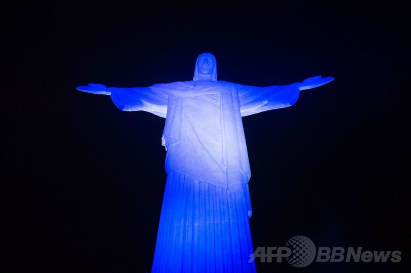 W杯決勝前夜、リオのキリスト像もライトアップ