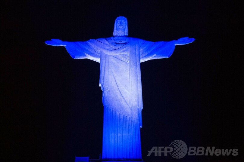 W杯決勝前夜、リオのキリスト像もライトアップ