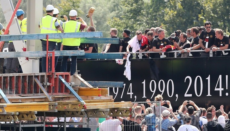 首都ベルリン(Berlin)では優勝パレードが行われ、ブランデンブルク門(Brandenburg Gate)前の特設会場には25万人以上のファンが詰めかけた。(c)AFP