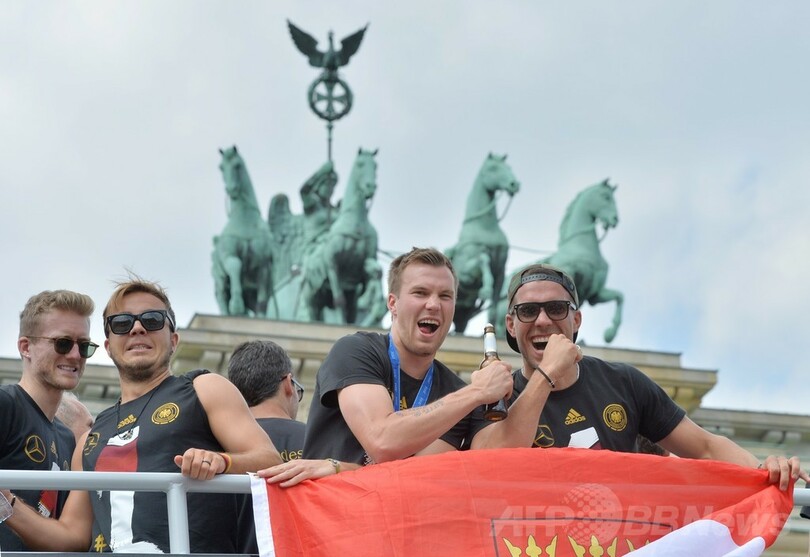 首都ベルリン(Berlin)では優勝パレードが行われ、ブランデンブルク門(Brandenburg Gate)前の特設会場には25万人以上のファンが詰めかけた。(c)AFP