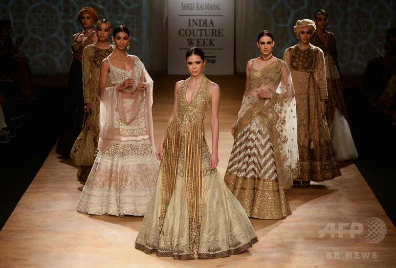 会期中には、現地デザイナーの「Sabyasachi Mukherjee」、「Anju Modi」、「Monisha Jaising」らが新作を発表した。(c)AFP