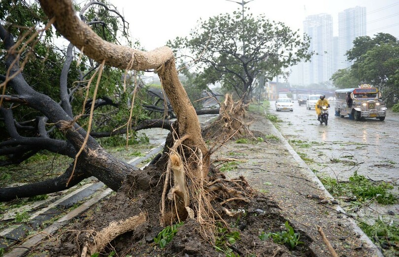 台風9号の中心は15日夜、東部ビコル(Bicol)地方のアルバイ(Albay)州レガスピ(Legazpi)を通過した。暴風雨によりマニラ首都圏の機能はほぼまひしている。金融街マカティ(Makati)を含め、各所では16日の夜明け直後から午前いっぱいまで停電した。マニラ湾(Manila Bay)に面したスラム街では、多くの簡易住居が倒壊した。