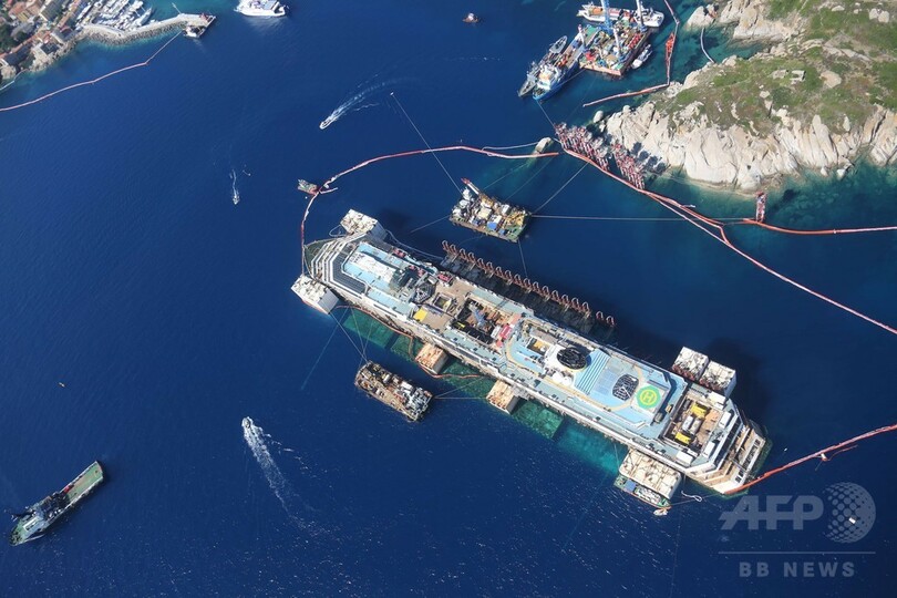 【7月21日 AFP】2012年にイタリア中部ジリオ(Giglio)島沖で座礁した豪華客船コスタ・コンコルディア(Costa Concordia)号(全長290メートル、重さ11万4500トン)が22日、ジェノバ(Genoa)の解体施設に向けて最後の「航海」に出る。