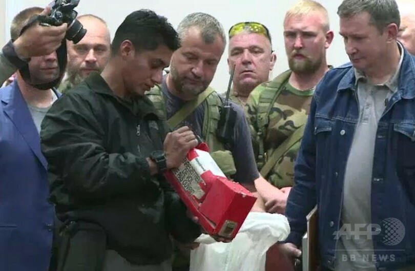 【7月22日 AFP】(写真追加)ウクライナ東部を掌握する親ロシア派武装勢力は22日未明、マレーシア航空(Malaysia Airlines)MH17便の墜落現場から回収した2つのブラックボックスをマレーシア政府当局者に引き渡した。