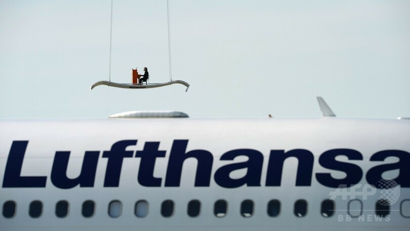 【7月24日 AFP】ドイツ南部ミュンヘン(Munich)の国際空港で23日、ピアニストのシュテファン・アーロン(Stefan Aaron)さんが、ヘリコプターでつり上げられた「空飛ぶじゅうたん」風のアルミニウム製構造物に乗り演奏を披露した。