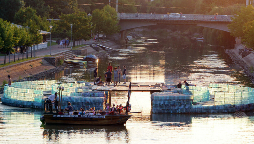 ペットボトル15万7000本!橋でごみ問題啓発 ルーマニア