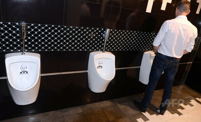 レストランの小便器にプーチン露大統領の顔、ウクライナ