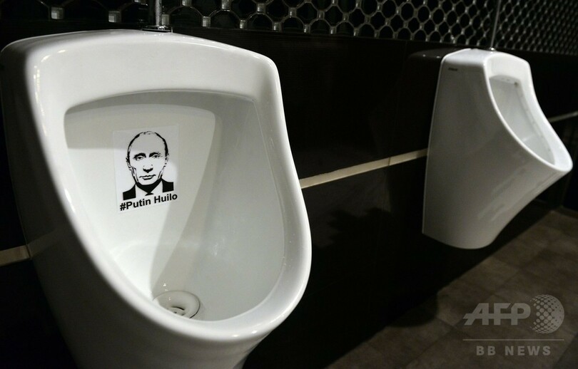 レストランの小便器にプーチン露大統領の顔、ウクライナ