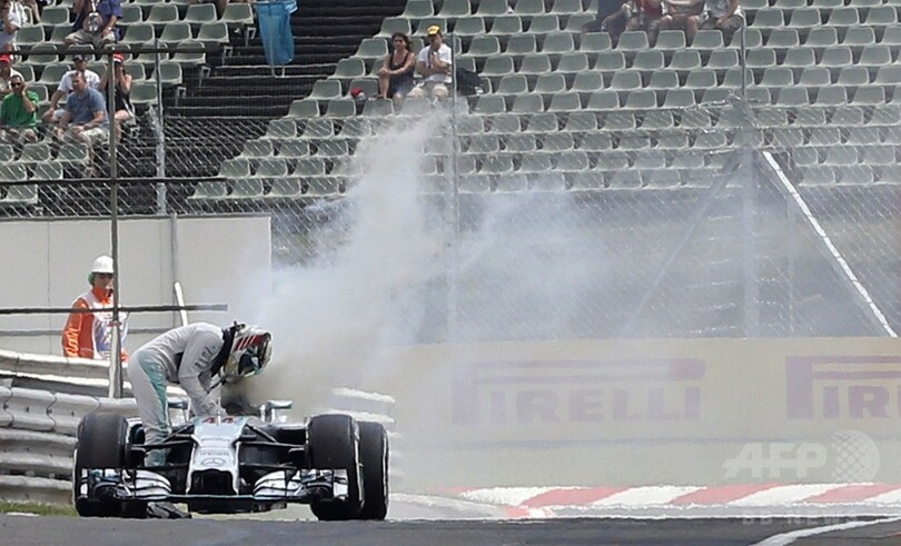 【7月27日 AFP】14F1第11戦ハンガリーGP(Hungarian Grand Prix 2014)は26日、予選が行われ、メルセデスAMG(Mercedes AMG)のルイス・ハミルトン(Lewis Hamilton)は、開始直後にマシンが炎上し、記録無しに終わった。
