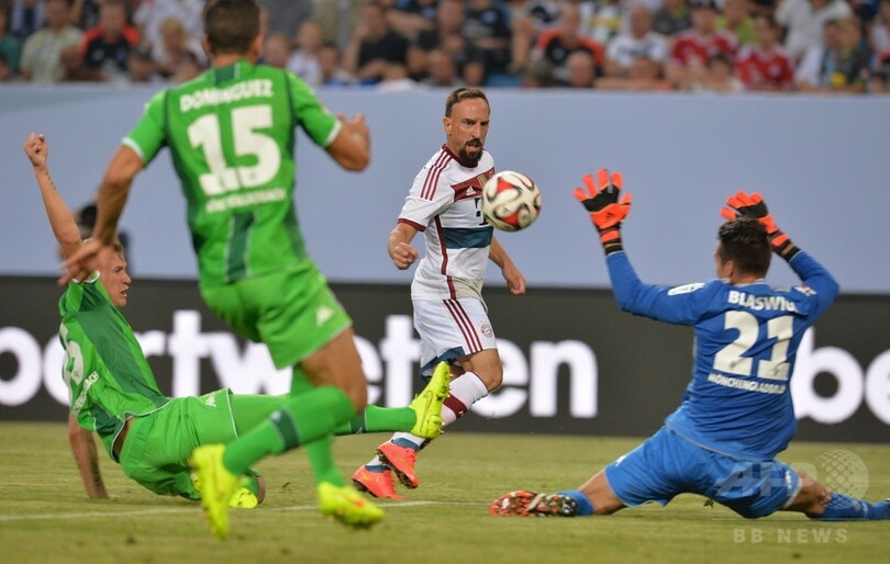 バイエルンは前半29分にボルシア・ドルトムント(Borussia Dortmund)から加入したロベルト・レワンドフスキ(Robert Lewandowski)が先制点を決めると、続けざまにフランク・リベリ(Franck Ribery)が追加点を挙げた。