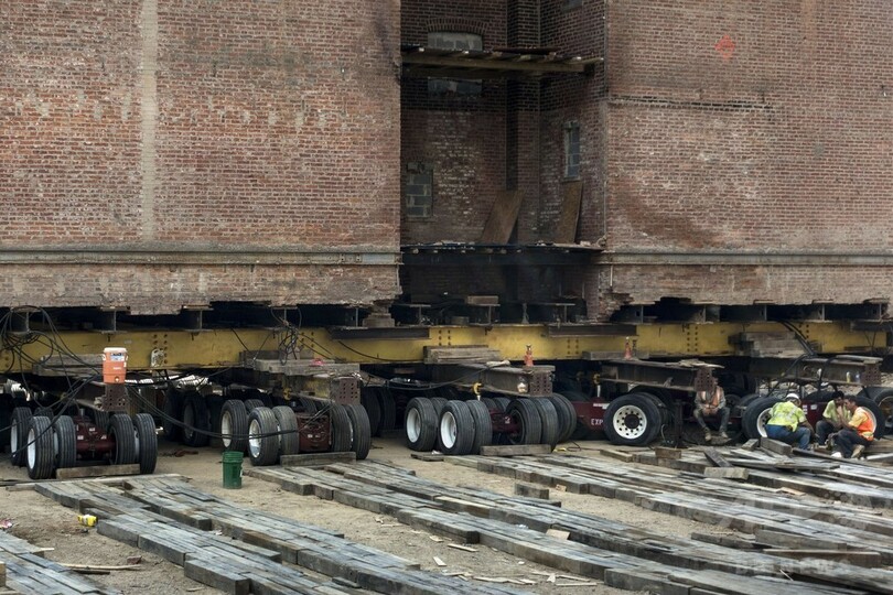【7月29日 AFP】米首都ワシントン(Washington D.C.)で28日、歴史的建造物の大胆な引っ越しが行われた。建物を解体せずにそのままの状態で移動する方法が用いられ、市内ニューヨーク・アベニュー(New York Avenue)を移動した。区画整理事業に伴う引っ越しだという。(c)AFP