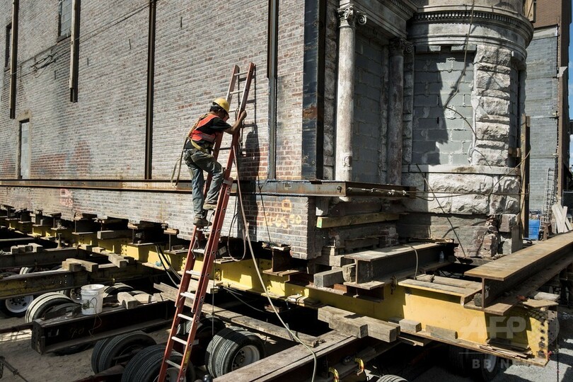 【7月29日 AFP】米首都ワシントン(Washington D.C.)で28日、歴史的建造物の大胆な引っ越しが行われた。建物を解体せずにそのままの状態で移動する方法が用いられ、市内ニューヨーク・アベニュー(New York Avenue)を移動した。区画整理事業に伴う引っ越しだという。(c)AFP