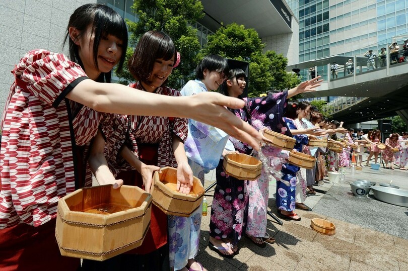 ニュース ライフ こぼれ話 今年は浴衣姿、秋葉原で恒例の打ち水イベント 2014年8月2日 13:41 発信地:東京 [ アジア・オセアニア 東京 ] このニュースをシェア ‹ › ❮ 2/4 ❯ 東京・秋葉原で行われた毎年恒例の打ち水イベントに参加した人々(2014年8月2日撮影)。(c)AFP/TOSHIFUMI KITAMURA 画像作成中 ! 【8月2日 AFP】東京の秋葉原で2日、暑さを和らげようと毎年行われている夏の打ち水イベントが行われ、メイドカフェの店員や秋葉原で働いている人など約260人が浴衣姿で参加した。(c)AFP ライフ 一覧へ> メディア・報道関係・法人の方向け 写真・動画 購入のお問合せ>