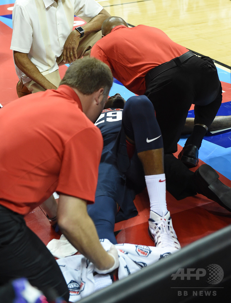 【8月3日 AFP】FIBAバスケットボール・ワールドカップ(FIBA Basketball World Cup 2014)に向けて行われた米国代表のエキシビションマッチで、右脚を骨折したインディアナ・ペイサーズ(Indiana Pacers)のポール・ジョージ(Paul George)が、2014-15シーズンを欠場することが確実となった。