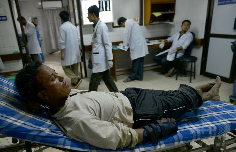災害管理当局の関係者はAFPに対し、「小規模な爆発を起こして土砂を崩し、たまった水を少しずつ放出している」と述べ、「川の上流の危険度は最小限に抑えることができたが、(せき止められた部分より)下流の周辺地域はまだ危険な状態だ」と話した。(c)AFP/Paavan MATHEMA