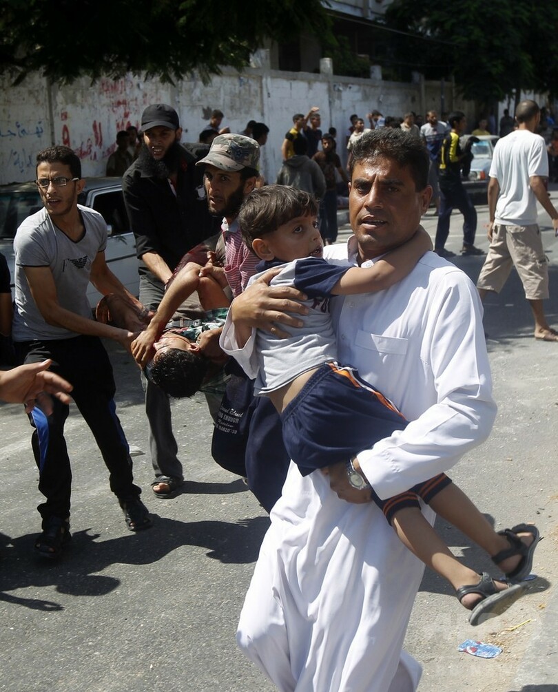 今回の攻撃は、エジプトの首都カイロ(Cairo)にパレスチナ各派が停戦交渉のために集まり、世界各国が交戦双方に停戦に応じるよう緊急要求の声を強めている中で起きた。欧州連合(EU)加盟28か国を代表し、欧州理事会のヘルマン・ファンロンパイ(Herman Van Rompuy)常任議長(EU大統領)と欧州委員会(European Commission)のジョゼ・マヌエル・バローゾ(Jose Manuel Barroso)委員長が署名した声明は、「流血は止めなければならない」と述べている。(c)AFP