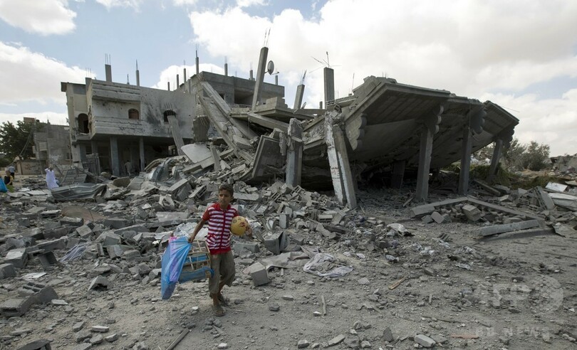 【8月4日 AFP】(写真追加)グリニッジ標準時(GMT)4日午前7時(日本時間午後4時)、イスラエル軍は攻撃していたパレスチナ自治区ガザ地区(Gaza Strip)の大半で7時間の一方的な「人道的停戦」を開始したが、その数分後、ガザ市(Gaza City)のパレスチナ避難民キャンプが空爆され、子ども1人が死亡、30人が負傷した。
