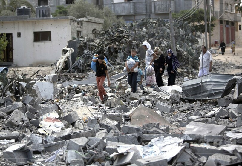 【8月4日 AFP】(写真追加)グリニッジ標準時(GMT)4日午前7時(日本時間午後4時)、イスラエル軍は攻撃していたパレスチナ自治区ガザ地区(Gaza Strip)の大半で7時間の一方的な「人道的停戦」を開始したが、その数分後、ガザ市(Gaza City)のパレスチナ避難民キャンプが空爆され、子ども1人が死亡、30人が負傷した。