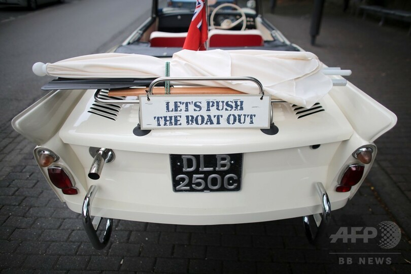 【8月4日 AFP】ドイツのトラーベン・トラバッハ(Traben-Trabach)近郊のモーゼル(Mosel)川で2~8日まで、今年4回目を迎える水陸両用車の祭典「アンフィビ(Amphib)2014」が開催されている。(c)AFP