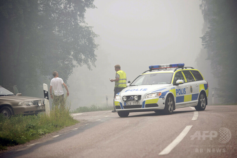今夏、スウェーデンは例年より気温が高く乾燥した天候が続き、乾いた森林で山火事が発生すれば燃え広がりやすい自然条件が重なっていた。5日には、火の手が回った路上で30歳男性の遺体が見つかり、この山火事による最初の犠牲者と確認されている。(c)AFP