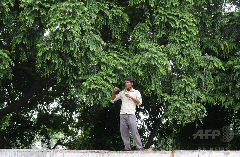 【8月10日 AFP】インドの首都ニューデリー(New Delhi)では、食べ物を求めて庭やオフィスを荒らす野生のサルを鳴きまねで追い払う「モンキー・マン」たちが活躍している。鳴きまねを始めると直ちにサルの群れが庭を荒らすのをやめるほど効果てきめんだ。