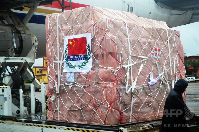 中国大使は、エボラ出血熱の予防キットや消毒剤などをシエラレオネ側に手渡した。中国はリベリアとギニアにも医療用品などを提供している。(c)AFP