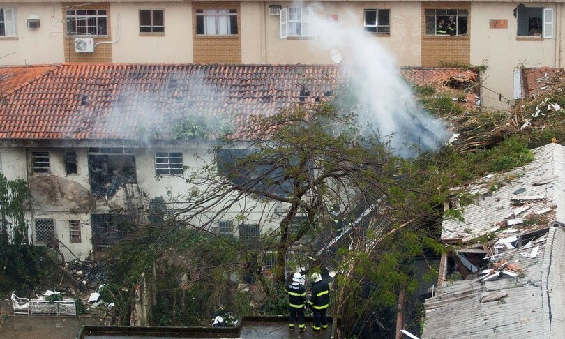 空軍報道官によると、リオデジャネイロ(Rio de Janeiro)からサンパウロに向かっていた同機は「着陸準備中に悪天候のために墜落した」という。地元メディアが伝えた消防隊員の話によると、墜落現場では少なくとも10人が負傷した。(c)AFP