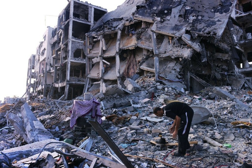 イスラエルがガザ地区への本格的な攻撃を始めた7月8日以降、国連(UN)は約1万軒の住宅が破壊されたと推測している。イスラエルとパレスチナは13日夜、ガザ地区での停戦を5日間延長することで合意した。(c)AFP