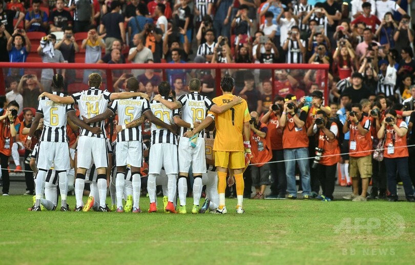 今夏のツアーでインドネシア選抜とAリーグ・オールスターに勝利していたユベントスは、イタリアに帰国し、30日に敵地で迎えるキエーボ・ベローナ(Chievo Verona)との新シーズン開幕戦に備えることになる。(c)AFP