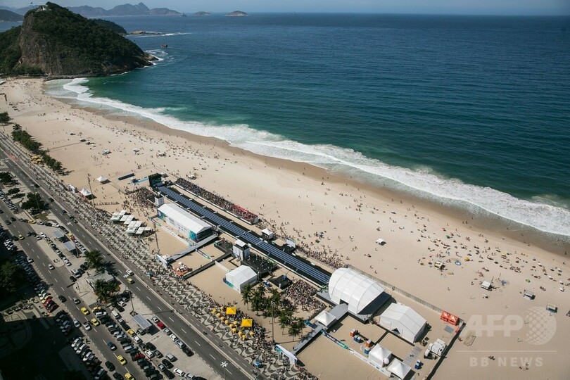 【8月18日 AFP】陸上・短距離の五輪メダリストで、世界記録保持者のウサイン・ボルト(Usain Bolt、ジャマイカ)が17日、夏季五輪開催を2年後に控えるブラジル・リオデジャネイロ(Rio De Janeiro)のコパカバーナ・ビーチ(Copacabana Beach)で、今年初めて100メートルのレースに出場した。
