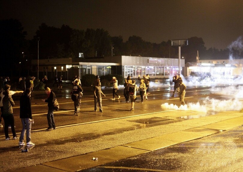 ジェイ・ニクソン(Jay Nixon)州知事は同市に非常事態を宣言し、同日午前0時から同5時までの外出禁止令を発令していたが、約200人の住民がこれに逆らい抗議デモを強行。警官隊はデモを解散させるため、発煙弾と催涙ガスを使用した。