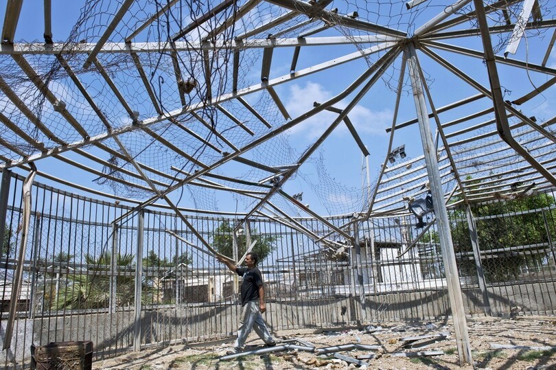 飼育員のファリド・ヒシ(Farid al-Hissi)さんは、「サル8匹とダチョウ1羽が殺された。ライオンの檻が大きな損傷を受け、動物園は完全に破壊された。ビサンの動物園は壊滅状態だ」と訴えた。