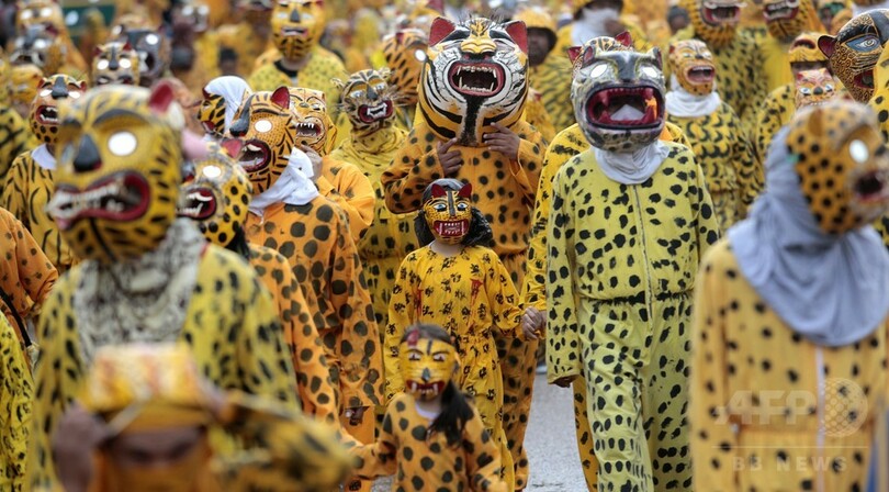 ニュース ライフ トラの衣装で豊作祈願パレード、メキシコ・チラパ 2014年8月18日 16:34 発信地:チラパ/メキシコ [ 中南米 メキシコ ] このニュースをシェア ‹ › ❮ 4/10 ❯ メキシコ・ゲレロ(Guerrero)州チラパ(Chilapa)で、豊作を祈願する伝統のパレードにトラの着ぐるみ姿で参加する人々(2014年8月15日撮影)。(c)AFP/Pedro PARDO 画像作成中 ! 【8月18日 AFP】メキシコ・ゲレロ(Guerrero)州チラパ(Chilapa)でこのたび、恵みの雨と豊作を祈願する伝統のパレードが開催され、多くの人々がトラなどの衣装を身に着けて参加した。(c)AFP ライフ 一覧へ> メディア・報道関係・法人の方向け 写真・動画 購入のお問合せ>