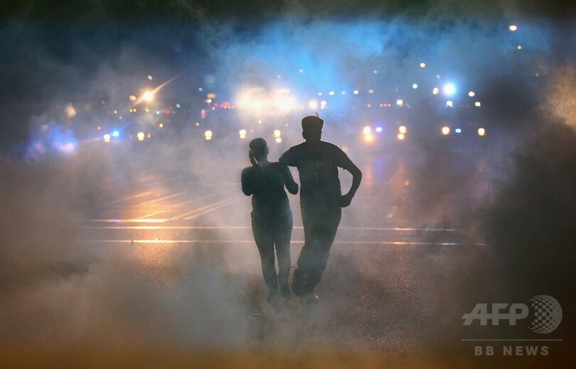 ファーガソンは、今月9日に丸腰の黒人青年マイケル・ブラウン(Michael Brown)さん(18)が白人の警官に射殺されて以来、激しい抗議デモや暴動で緊迫している。17日夜には暴徒に対し、警察が催涙弾とゴム弾を使用。暴徒が火炎瓶で応酬するなど衝突は激化している。(c)AFP