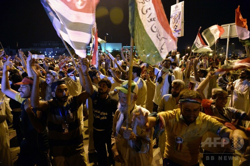 【8月20日 AFP】 パキスタンの首都イスラマバード(Islamabad)で20日、ナワズ・シャリフ(Nawaz Sharif)首相の退陣を求める数万人が国民議会に向けデモ行進を行った。