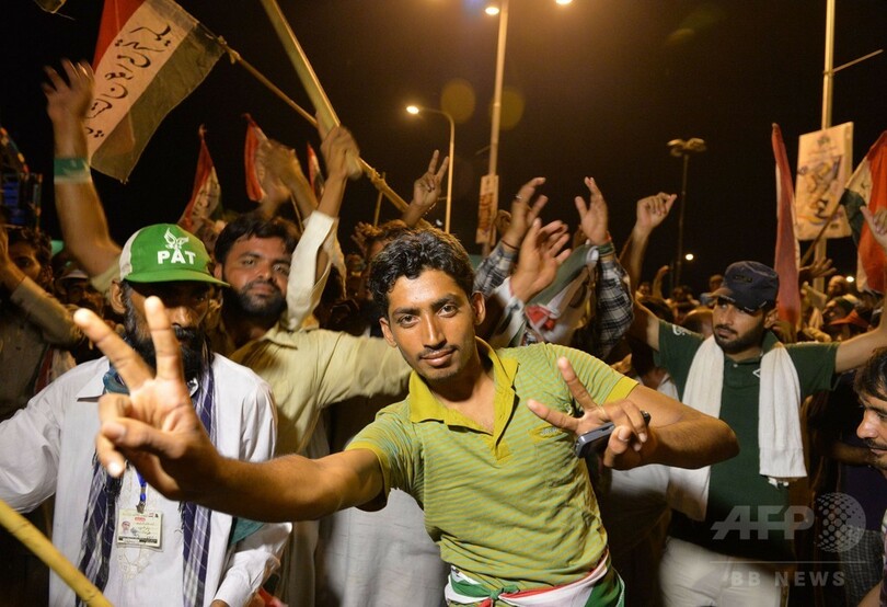 【8月20日 AFP】 パキスタンの首都イスラマバード(Islamabad)で20日、ナワズ・シャリフ(Nawaz Sharif)首相の退陣を求める数万人が国民議会に向けデモ行進を行った。