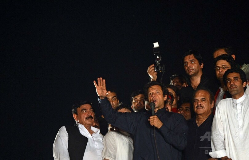 【8月20日 AFP】 パキスタンの首都イスラマバード(Islamabad)で20日、ナワズ・シャリフ(Nawaz Sharif)首相の退陣を求める数万人が国民議会に向けデモ行進を行った。