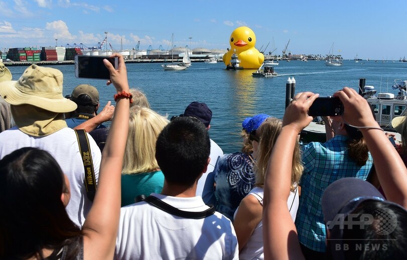 【8月21日 AFP】米ロサンゼルス(Los Angeles)のサンペドロ(San Pedro)港に20日、アヒルのおもちゃを巨大化したオランダ人アーティストのフロレンティン・ホフマン(Florentijn Hofman)氏によるアート作品「ラバー・ダック(Rubber Duck)」が登場した。