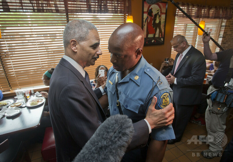 ホルダー長官は、警察当局による隠ぺいを疑っているファーガソンの住民に対し、「(司法省の)最も経験豊かな要員と検察官」をブラウンさんの死をめぐる捜査に任命したと語り、「われわれの捜査は違う。われわれは市民権に関連する連邦法の違反がなかったかどうかを調べる」と述べた。(c)AFP