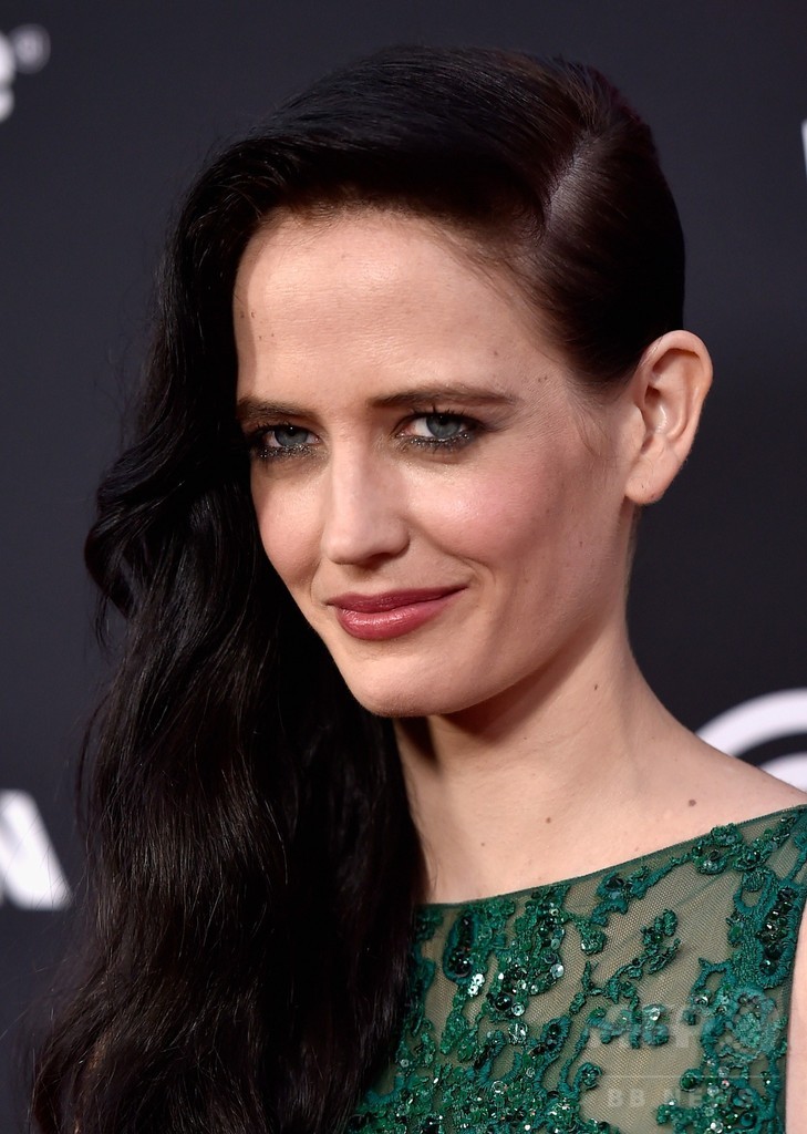 女優のエヴァ・グリーン(Eva Green)はこの日、「エリー・サーブ(Elie Saab)」のオートクチュールドレスを着用してメディアの前に姿を見せた。(c)AFP/Getty Images